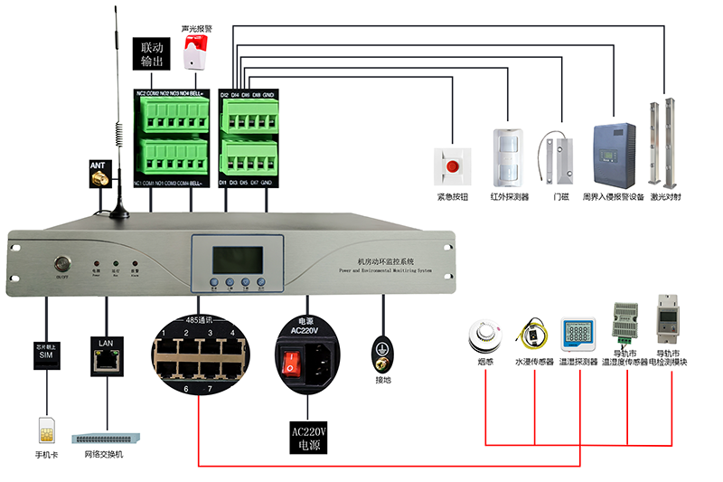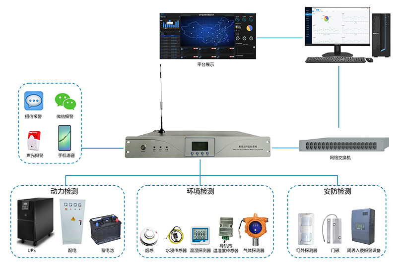 動環主機是一款集動力環境監控功能及入侵防盜報(bào)警於(yú)一體的設備,可實時監測機房、基站等場所的動力設備運行狀态、環境參數、入侵報(bào)警 ,如市電、UPS、蓄電池、溫濕度、煙霧、漏水、門禁