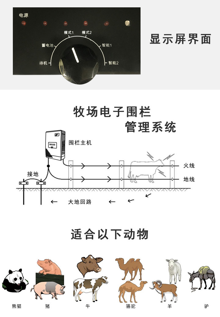 • 适用於(yú)牧場(chǎng)、養殖場(chǎng)、動物園等,可以限制圈養動物的活動範圍;